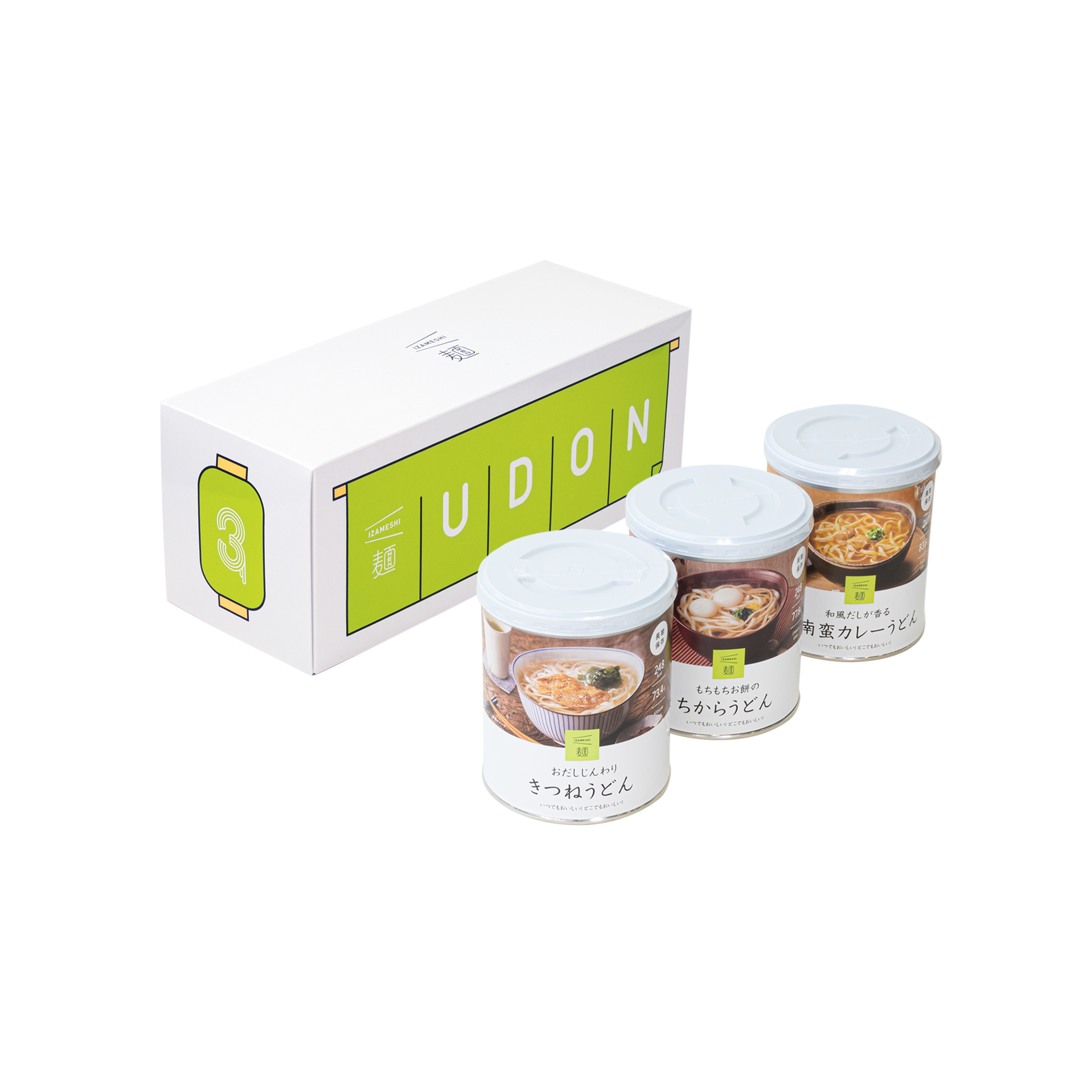 本格手延べうどん3種を1箱に詰めました(3缶セット)