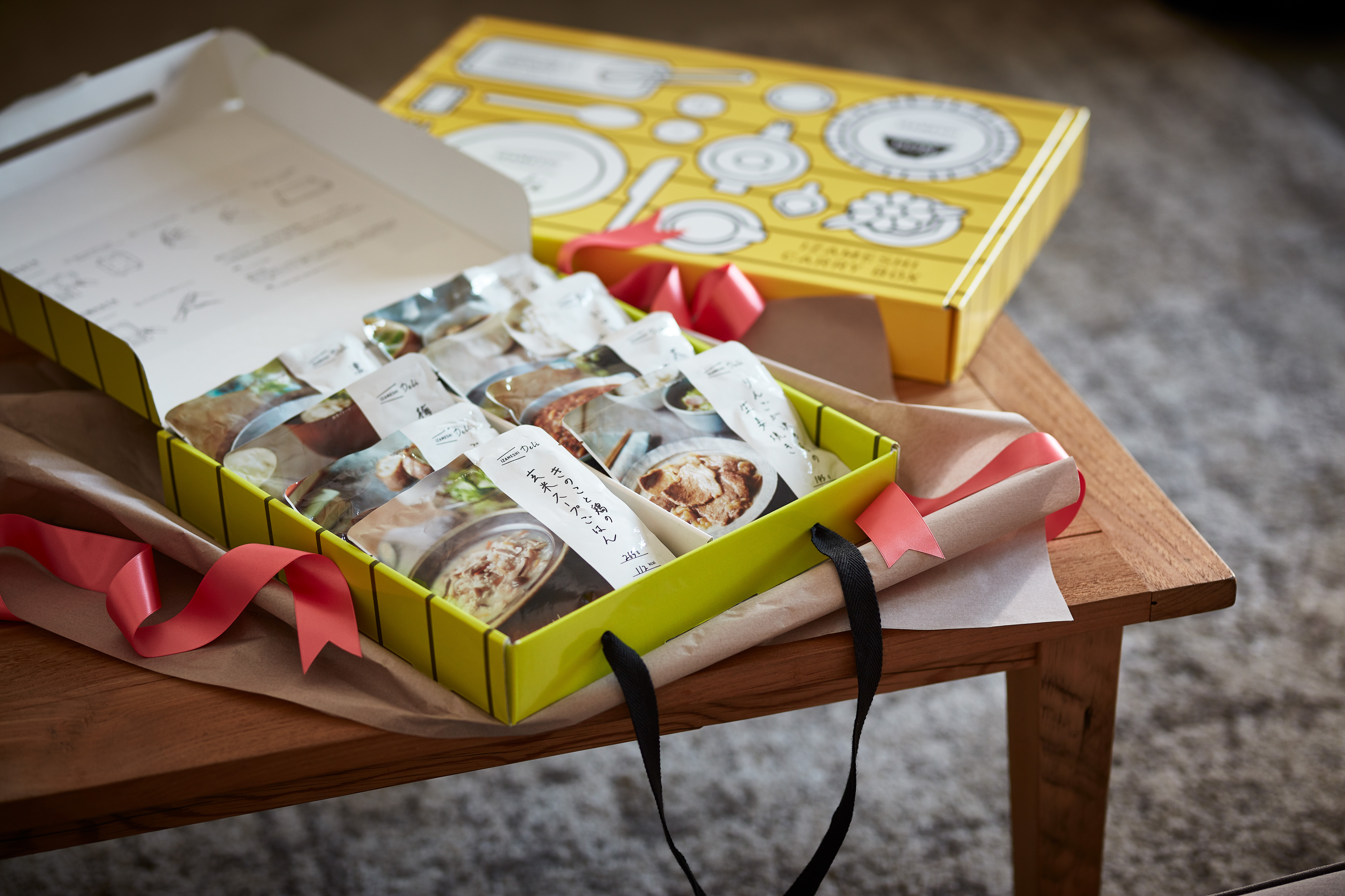 - 味にこだわった保存食・イザメシDeliと食べごたえのある丼シリーズ、紙皿、紙スプーンが同梱されたセットです。