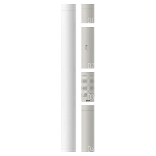 4つのパーツは、 避難時に必要な光(ランタン)、眼鏡や常備薬(ケース)、情報(ラジオ)、防寒(ポンチョ)の順に約6センチの樹脂製の筒に収められています。